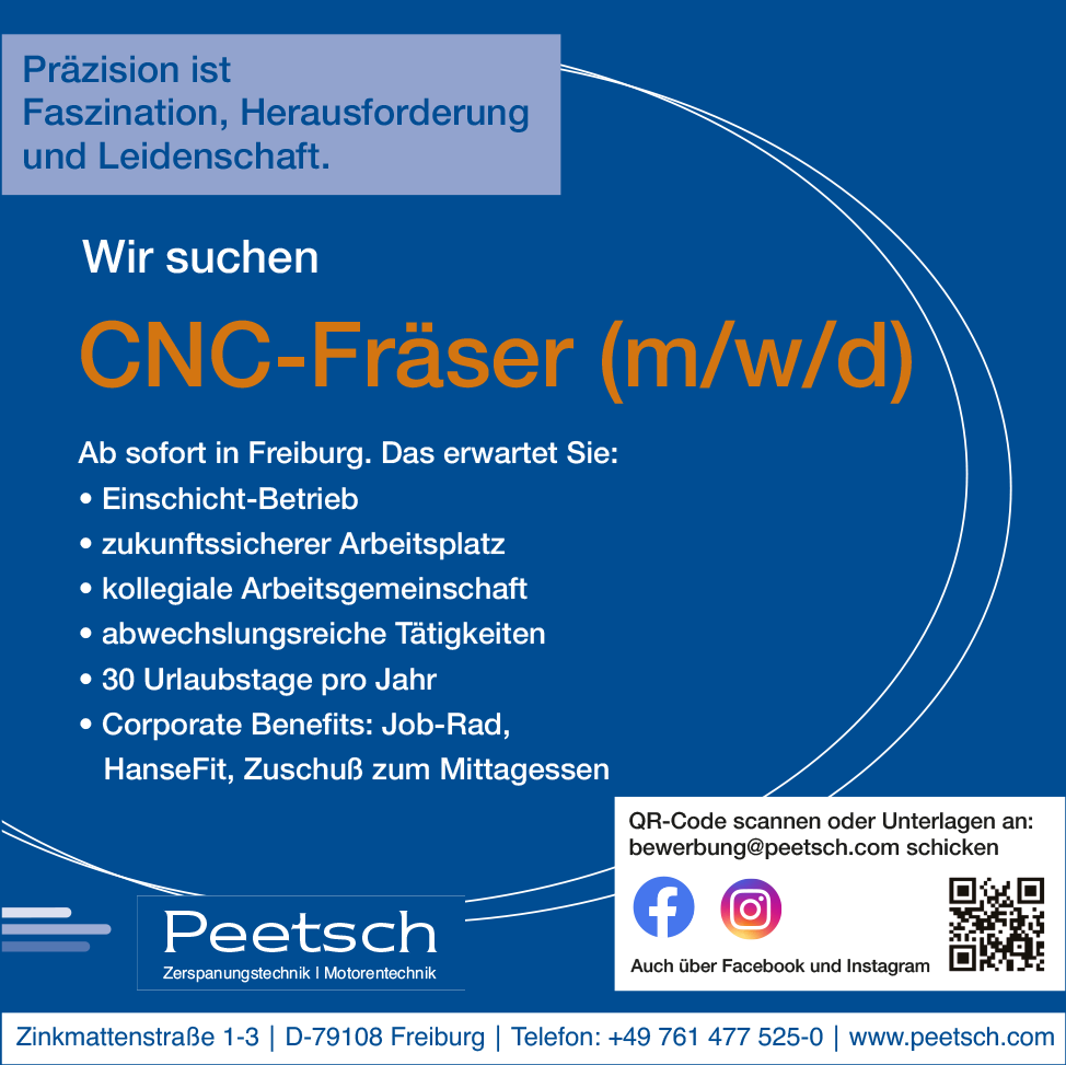 - oder Post an Peetsch GmbH, Zerspanungstechnik Motortechnik, Zinkmattenstraße 1-3, D-79108 Freiburg